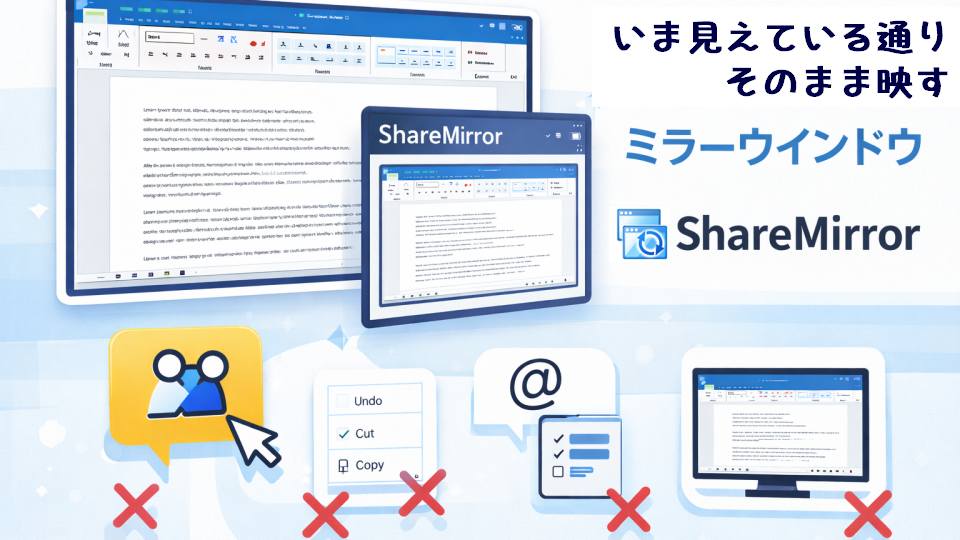 不便な点を解決するために、「いま見えている通り」をそのまま映すミラーウィンドウを作成する、Windows向けのユーティリティShareMirrorを作成しました。